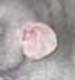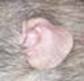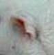 These ears are being favoured by more dumbo breeders at the moment. They appear pointed but if you gently press a finger to the back of the ear, you can see that the ears will be perfectly rounded as per the ‘open ears’ above. The ear is slightly furled at the top and usually indicates the ears are in the right position on the rat’s head. The two most common faults on a dumbo rat with this type of ear is the head being too long and narrow, and the ears being too narrow and pointed and tubular rather than rounded. We are proposing to change the standard to fit this ear type in the future. Creased Ears (also known as butterfly or cauliflower ears)