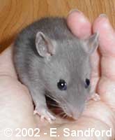 You should give your rats a daily 'at a glance' health check and a thorough health check at least once a week and also before taking the rat to a show. When you buy new rats, you should also give them a thorough check as well. The key things to check 'at a glance' on at least a daily basis with your rat: Nose - check for redness, listen for noisy breathing. Eyes - check for staining and redness, eyes should be clear and no sign of cloudiness. Mouth - check teeth not overgrown, check for any sores around the mouth area that could be caused by overgrown teeth. Chin and face - free from scabs, protein related scabs tend to accumulate under the chin area and around the face. Ears - clean and free from scabs, scabs in the ear area may be sarcoptic mites. Chest - hold rats belly against your ear to listen for unusual noises and wheeziness. General body - free from scabs and wounds, also check regularly on the underside for mammary lumps. Check around rump area for mite scabs and lice. Skin should 'ping' back when gently pinched. Feet and Legs - trim the toenails regularly, check for bitten toes and lumps on the underside of feet. Coat - smooth and glossy to touch, apart from rex rats. No bald patches. Tail - clean and smooth, check for cuts and damage. Thorough Checklist This should be done as regularly as possible, but at least once a week and definitely before entering your rats for shows and before buying a rat from a breeder or pet shop: - First to introduce the main model: