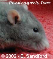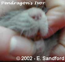 Rats toes are four fingers at the front and 5 toes at the back. Claws (toe-nails) should be nice and short - trimmed regularly to lose the 'white tips' beyond where the dark area behind the toenail is. In the above pictures, you should be able to make out where the dark part ends. Ivor's toe-nails are impeccably trimmed!! You should regularly check the undersides of the feet for cuts and sores - sores may be a condition known as bumblefoot. Toe injuries are not uncommon and these tend to bleed profusely, so it is worth having some styptic powder handy as a just in case. When rats walk across other rats cages, they can even sometimes end up with toes being bitten off and it it not that uncommon to 'rip off' the odd toenail as well. Other things to watch around the feet are for the legs being stripped of hair, this is usually self barbering, which is a bad habit a bit like us chewing our finger nails, quite often stress related and almost always something they will always do - usually they will barber bald patches on their cage mates as well. Also look for red staining on the inside of the front legs; this indicates that they may have some sort of respiratory problem and a nasal discharge. Coat -