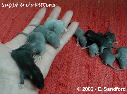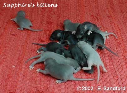 1 week old - these kittens weighed 12g and you can now see that they are developing a very soft velvety start to a coat.