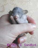 Now you know how to select your stud buck, you need to look at selecting suitable does for him. Much of what has been said above about temperament, health and talking in length to breeders about the rest of the family is still very important. Breeding age - Does will generally not be bred from under 4 months old, and ideally should be bred from before 8 months old, particularly if you are considering a second litter as well. There are some people who believe that pelvic fusion can occur after about 8 months, but while I know this can happen in guinea pigs, I have never heard or seen any evidence in rats to support this and this is probably nothing more than a myth spread by internet websites. Personally I would not allow a doe to have her first litter over about 10 months old with my ideal preference being 5-6 months old. Health - Does are more prone to mammary lumps than bucks so apart from ensuring that the doe is healthy up to the time when you are ready to breed from her, it is worth trying to find out if there is any history of mammary lumps in the lines. Temperament - Only choose the best tempered does, and this should help to pass on good temperament to the kittens. Does are generally more lively than bucks, but they should be 'friendly lively' not 'skittish lively'. Size and type - Does should have a long, racy body without too much fat. The head should be longer and more pointed than the bucks and the eyes should be good sized. Generally does look more leaner and fitter than the bucks and fat does rarely get pregnant easy, so it is important to keep them lean and fit and not overfeed them as kittens or teenagers. I like my does to weigh at least 300g at the time of mating and most tend to be nearer 350g but if they get much over the 400g mark, this is where problems often occur. Does tend to grow with their first litter and are usually slightly bigger afterwards. Learning more - As above with the bucks, visit shows and ask experienced breeders and off-duty judges to show you nice racy brood does. Many breeders keep more does than they plan to breed from as a just in case, so by asking around, you may be able to obtain a doe that is nearly ready to breed. Outcrossing, Line breeding and Inbreeding A lot of people ask why it's ok to inbreed animals while when humans inbreed it can cause health problems. For experienced breeders, inbreeding and linebreeding are used as 'tools' to improve the lineage and help keep problems out of the line. There are several excellent articles online explaining these breeding methods. Once you have selected your breeding rats and they are both in the peak of fitness, it's time to consider the actual mating. One thing I would highly recommend in the weeks before doing the actual mating is to get into contact with the breeders of your rats and ask for an update of parents, siblings and other relatives in the line. If you discover you actually have the only rat from a litter which have all been sick or had problems or parents have died from illness or there are tumours appearing in the line, you may want to reconsider whether to use your rat at all in your breeding lines! Study your doe and you will notice that every 5-6 days she is 'in season' - the symptoms of this being arching back when you touch her back near her tail and sometimes waggling the ears as well which is known as lordosis. Sometimes other does will try to jump on her during this time. (Bear in mind that it is not unusual for does to not come into season at all during some of the winter months and even when they do, quite often they will not get pregnant - it seems to be natures way of saying it's not the best time of year to breed.) You have 2 choices for the actual mating time, either you can leave a buck running with the doe for a few days or even a week or more, or alternatively you can watch your doe and when she shows the symptoms of being in season, put her and the buck in together for a few hours or preferably overnight. I prefer the second as my bucks go back in with their cagemates easier if they are only out for a one night stand, than being away for days or weeks and also I know exactly when they were mated which gives a better idea of when they are due, whereas if they are running together, you will probably have no idea when they were actually mated. While they are mating, keep an eye open for distress, some bucks can be a bit rough and make the doe bleed slightly, and she should be removed immediately if this should happen. Sometimes you will notice afterwards that the doe has a whitish plug in her urethra opening - this is a good sign. If you decide to leave the buck in with the doe for the full term of her pregnancy, ensure you remove him just before she gives birth as does usually come into season immediately on giving birth, which means he could mate her again! Gestation period for rats is normally 21-24 days, although it can be as long as 25 and there have been cases of delayed implantation recorded that have allowed the pregnancy to go on for as long as 35 days on rare occasions - there are often problems if the pregnancy extend for more than 24 days though. During the pregnancy you should maintain a good healthy diet for your doe. Do not increase the diet during pregnancy as this can cause birthing problems if the doe becomes too fat during pregnancy. You can choose to weigh your doe while she is pregnant but this is not really recommended and can cause her to reabsorb. Does gain between 30-60g per week during pregnancy and generally gain between 100-150g total. Most breeders prefer to not handle their pregnant does much during their pregnancy period though as this seems to sometimes cause the does to reabsorb their litters. Personally I try to handle my pregnant does as little as possible while they are pregnant and once moved to the birthing cage, the only disturbance they get until after birthing is giving them food and water. You will probably notice a temperamen