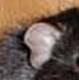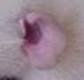These ears are being favoured by more dumbo breeders at the moment. They appear pointed but if you gently press a finger to the back of the ear, you can see that the ears will be perfectly rounded as per the ‘open ears’ above. The ear is slightly furled at the top and usually indicates the ears are in the right position on the rat’s head. The two most common faults on a dumbo rat with this type of ear is the head being too long and narrow, and the ears being too narrow and pointed and tubular rather than rounded. We are proposing to change the standard to fit this ear type in the future. Creased Ears (also known as butterfly or cauliflower ears)