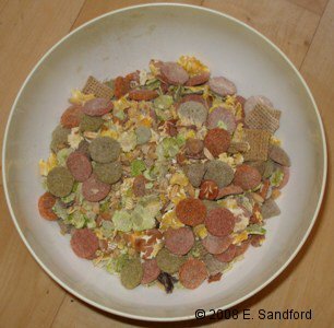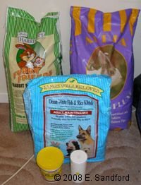 Diet & Feeding I firmly believe that the best rat food for my rats is one I effectively make up myself and rat breeders have been mixing their own rat diets for years to see the best growth, quality and health on their rats so primarily I learned from the experience of others soon after I started breeding myself and soon moved away from 'rat foods'. The below is what I refer to as the 'Breeders' Diet', because it is made up in bulk, but it should be perfectly possible for pet rat owners with less rats to be able to follow a similar diet adding and buying things in smaller quantities. I do not like using any proprietary rat foods that contain meat products as the quality of the meat (usually chicken) used in small animal mixes is usually very low quality and most will have had growth hormones and artificial preservatives added, which can cause tumours and lumps in rats. I prefer to add my own choice of dog kibble or meat products from known quality sources to a vegetarian 'base' diet. Breeders' Diet Base