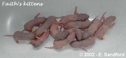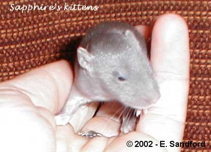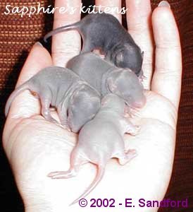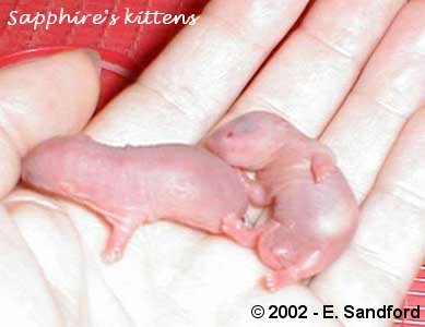 1 week old - these kittens weighed 12g and you can now see that they are developing a very soft velvety start to a coat.