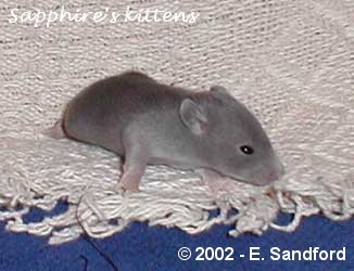 1 week and 2 days old - coat is very soft and velvety at this age. Kittens weighed 16g at this age.