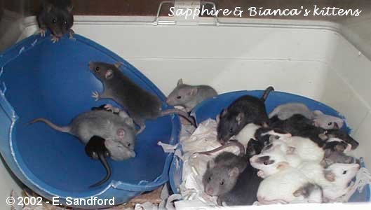 2 weeks and 2 days old - average weight 30g - as you can see, these are really starting to look much more like miniature rats now. Once they have their eyes opened, they start moving around and eating solids very quickly.